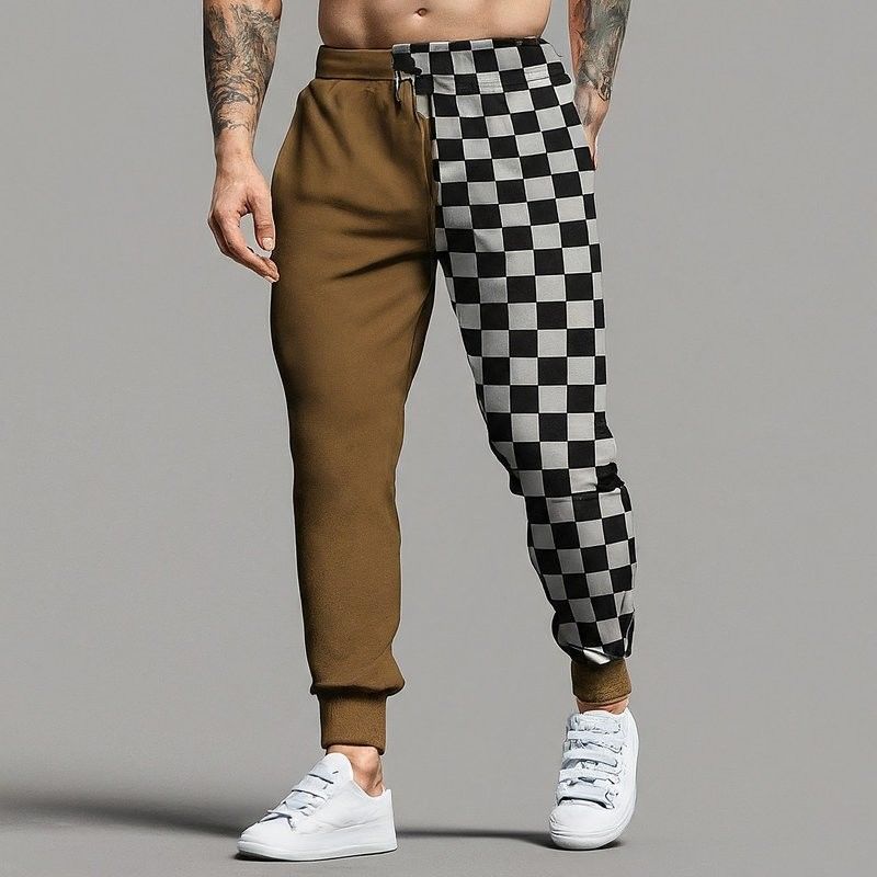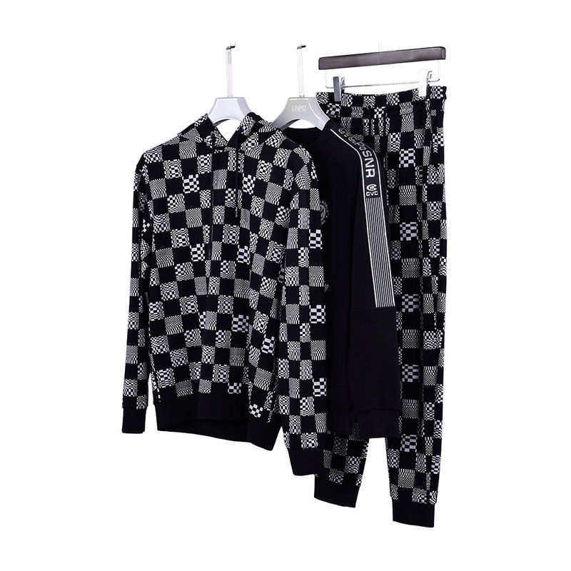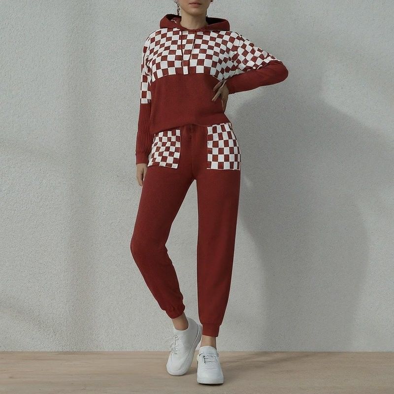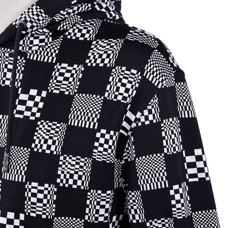 Mensen Checkerboard Hoodie En Track Broek Terry Jogger Sport Streetwear Sweatpants Set
